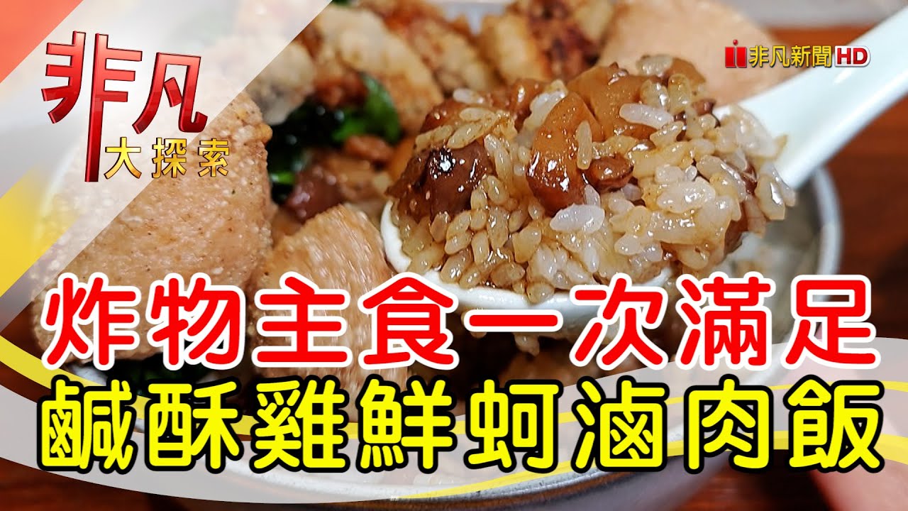 海陸雙拼滷肉飯, 炸魚咖哩烏龍麵, 雞皮仙貝, 炸豆皮, 蘋果甜甜圈,