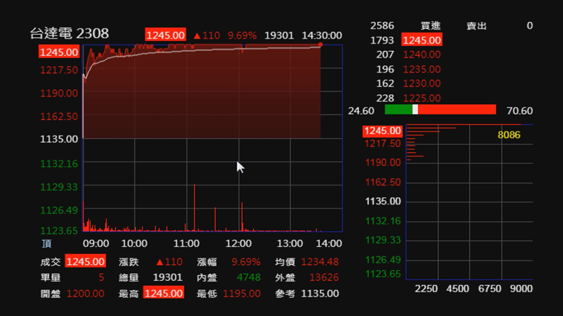 台股新二哥! 台達電漲停1245元 市值勝鴻海
